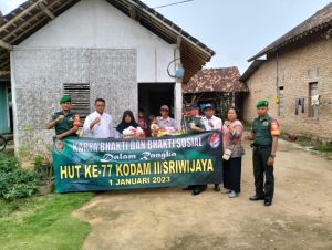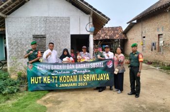 “Kegiatan bhaksos dalam rangka HUT Kodam II/Sriwijaya ke-77 ini bertujuan selain meningkatkan tali silaturahmi dan kepedulian kepada masyarakat penderita Stunting juga sebagai bentuk kemanunggalan TNI dengan rakyat”, ucap Dandim.