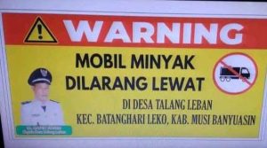 “Saya atas nama pemerintah Desa talang leban Kecamatan Batang Hari Leko memberi Himbauan kepada Seluruh mobil Pengangkut minyak Di Duga illegal dari Desa Tanjung dalam menuju ke daerah babat toman, agar tidak melintas pada jalur jalan tengah desa, harus lewat dari pinggir desa,lewat jalan lingkar mengingat sangat berbahaya sekali.