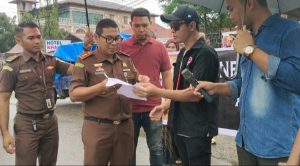 Setelah berorasi sejenak, dan membentangkan spanduk aksi berbunyi ” Penegakan Hukum Yang Tidak Adil adalah Pelanggaran HAM” kemudian perwakilan aksi meminta kepala kejaksaan itu untuk menandatangani selembar kertas berisi petisi yang memuat sejumlah tuntutan terkait penegakan hukum yang berkeadilan di Aceh Timur.