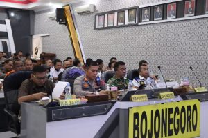 Polri menggelar rapat koordinasi (rakor) lintas sektor dalam rangka Kesiapan Pengamanan Natal 2022 dan Tahun Baru 2023 yang dipimpin oleh Kepala Polisi Negara Republik Indonesia (Kapolri) Jenderal Pol Listyo Sigit Prabowo, didampingi para Menteri Kabinet Indonesia Maju dan lembaga terkait bertempat Gedung Rupattama Mabes Polri. Untuk Polres Bojonegoro mengikuti secara daring di Gedung AP I Rawi Mapolres Bojonegoro, Jum’at(16/12/2022).