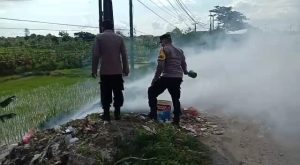 Jajaran Polsek Cikande Polres Serang merespon cepat laporan masyarakat perihal adanya pembakaran sampah di tepi jalan oleh pihak tidak bertanggungjawab, di Jalan Raya Serang-Jakarta, sekitar Desa Lewilimus, Kecamatan Cikande, Kamis (1/12/2022).