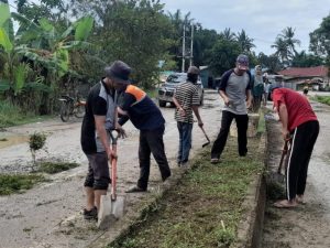 Inikan tugas harian kita untuk membersihkan jalan dari jalur dua sampai Kantor Camat diKelurahan Teluk Merbau yang mencakup tiga Desa.”ujarnya.