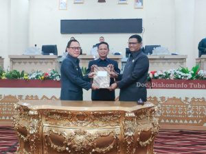 “Setelah penandatanganan Keputusan DPRD Serta Nota Kesepakatan Bersama Terhadap Ketiga Raperda dimaksud, Saya atas nama Pemerintah Kabupaten Tulang Bawang Mengucapkan terima kasih kepada DPRD Kabupaten Tulang Bawang atas dukungan serta sumbang saran mulai dari sejak pembahasan sampai dengan disetujui untuk selanjutnya dapat ditetapkan Raperda tersebut menjadi Peraturan Daerah” Sebut Pj Bupati Tulang Bawang ini