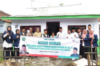 Bedah rumah merupakan salah satu kegiatan Bakti Sosial dalam rangka HAB (Hari Amal Bhakti) Ke 77 Kementerian Agama Republik Indonesia pada Kantor Kementerian Agama Kabupaten Banyuwangi, dan diresmikan oleh Kepala Kantor Kementerian Agama Kabupaten Banyuwangi Dr. Moh.Amak Burhanudin, Senin (16/01/23).