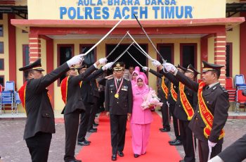 “Walaupun sudah memasuki masa pensiun, pemikiran dan kontribusi terhadap institusi Polri masih dibutuhkan terutama dalam lingkungan sosial dan masyarakat untuk ikut bersama-sama dalam menjaga sitkamtibmas tetap aman dan kondusif.” Terang Kapolres Aceh Timur AKBP Andy Rahmansyah, S.I.K.