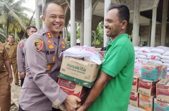 Kapolres mengatakan bantuan yang disalurkan berupa beras 75 sak, minyak goreng 2 (dua) dus, mie instan 35 kotak, telur ayam 10 papan dan sarden 1 (satu) dus).