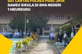 Menindaklanjuti arahan Kapolres Pidie jaya, AKBP Dodon Priyambodo, S.H,S.I.K,M.Si, melalui Kasat Lantas Iptu Ian Fitrah, S.H, Satlantas Polres Pidie Jaya menggelar program saweu sikula dan memimpin Upacara Bendera di SMA 1 Meureudu.