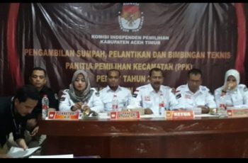 Komisi Independen Pemilihan (KIP) Aceh Timur melantik sebanyak 120 orang PPK hasil seleksi tulis dan seleksi wawancara.
