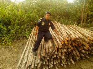 Kata dia, berdasarkan sumber diduga Kayu hasil penebangan ilegal dari hutan mangrove dinamakan kayu “teki” dan dijual kepada Penampung (Oknum, red) dengan harga Rp.3000 sampai dengan harga Rp.5000 /bulatan tergantung ukuran besar kecilnya kayu.