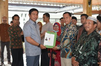 Muhd Fadhil Arief Bupati Batanghari menyerahkan piagam Penghargaan dan lencana Desa Mandiri sekaligus rapat koordinasi Camat dan Kepala Desa se-Kabupaten batanghari pada Jum’at, (13/01/2023).