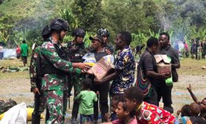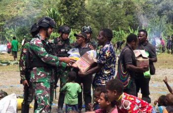 Pos Pintu Angin Satgas Yonif RK 113/JS berbagi sarana olahraga berupa Bola Voly dan Net Voly kepada pemuda Kampung Kulirik Distrik Muara Kab. Puncak Jaya. (01-01-2023)