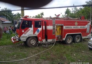 Kemudian terlihat mobil pemadam kebakaran dari Pemkab Labuhan Batu, turut memadamkan api sehingga api dapat di jinakkan.