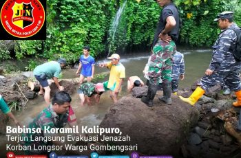 Sebagai wujud Kemanunggalan TNI dengan masyarakat anggota Koramil 0825/01 Kalipuro yang dipimpin langsung oleh Danramil 0825/21 Kalipuro Kapten Cba Guntur melaksanakan evakuasi korban longsor warga Gombengsari. (15-02-2023)