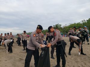 “Kami bersama Wisatawan yang mau ikut serta membantu memungut seluruh sampah yang ada di pantai, kemudian dimasukan kedalam kantong plastik sampah, selanjutnya sampah tersebut dikumpulkan lalu diangkut menggunakan mobil dinas kami untuk dibuang ke lokasi tempat penampungan sampah,” ujar AKBP Hidayat.