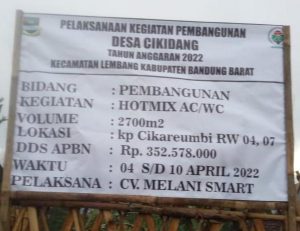 Selain permasalahan itu, Tokoh Masyarakat Desa Cikidang, Aep Sopyan sebelumnya juga sempat membahas adanya dugaan persekongkolan jahat demi meraup keuntungan pribadi maupun kelompok yang diindikasi dilakukan oleh Kades Cikidang Heri bersama-sama dengan pihak swasta (CV. Melani Smart) dalam Proyek Penghotmikan Jalan Desa di Kampung Cikareumbi RW 03, 04 dan RW 07 yang nilainya sebesar Rp352.578.000, pada Sabtu (3/9/2022).