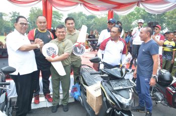 Gubsu, Edy Rahmayadi bersama Pangdam I/BB, Mayjen TNI A. Daniel Chardin, SE, MSi, Kapoldasu, Irjen Pol Drs RZ Panca Putra Simanjuntak, MSi, Danlantamal I Belawan, Laksma TNI Johanes Djanarko Wibowo, Dankosek I Medan, Marsma TNI M Nurdin, Ketua DPRD Sumut, Drs Baskami Ginting serta pejabat TNI-Polri dan Sipil lainnya, tampak antusias mengayuh sepeda masing-masing.