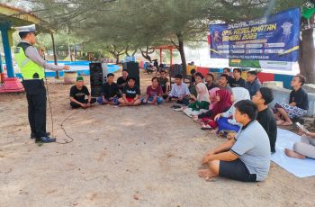 Satlantas Polres Pamekasan, Polda Jatim gencar melaksankan sosialisasi terkait Ops Keselamatan Semeru 2023 serta memberikan edukasi kepada masyarakat di sekitar wisata Talang Siring, Kec. Larangan, Kab. Pamekasan, Rabu (15/02/2023).