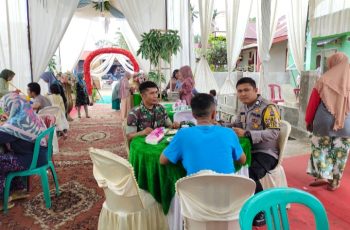 Kegiatan Babinsa Serda Dedi Ardianto dengan Bhabinkamtibmas Nagari Kampung Pinang Brigadir Ringga Pratama menghadiri pesta pernikahan warga binaan.
