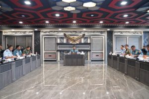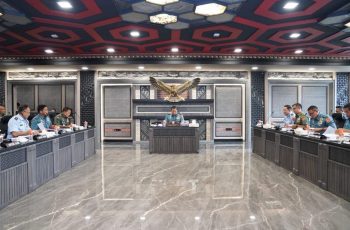 Panglima TNI Laksamana TNI Yudo Margono, S.E., M.M. didampingi Kasad Jenderal TNI Dr. Dudung Abdurachman, S.E., M.M., Kasal Laksamana TNI Muhammad Ali, S.E., M.M, M.Tr. (Opsla) dan Kasau Marsekal TNI Fadjar Prasetyo, S.E., M.P.P., CSFA memimpin sidang Panitia Penentu Akhir (Pantukhir) Dikreg LI Sesko TNI TA 2023, bertempat di Ruang Rapat Paripurna Lt. 3 Gd. Sudirman Mabes TNI Cilangkap, Jakarta Timur, Rabu (15/2/2023).