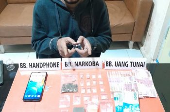 Barang bukti yang diamankan 16 paket Narkoba jenis shabu yang dibungkus dengan plastik bening, (Bruto 6.16 Gram), 4 butir Pil diduga Ekstasi Merk Y warna pink, (Bruto 1.26 Gram), satu paket Narkoba jenis daun ganja kering yang dibungkus dengan plastik bening, (Bruto 2.96 Gram), Handphone merk Vivvo warna hitam, 2 unit timbangan digital, empat ball plastik klip putih bening, alat hisap / bong, kaca pirex, sendok sabu dari pipet dan uang tunai hasil penjualan Rp 1.450.000 (satu juta empat ratus lima puluh ribu rupiah).