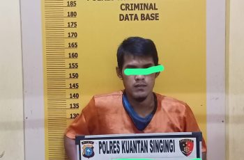 Pelaku berinisial DM (27) warga Dusun Sungai Kembar RT.001 RW 002 Desa Sitorajo Kari Kecamatan Kuantan Tengah Kabupaten Kuantan Singingi berhasil diringkus disebuah warung di Desa Sitorajo Kari, tanpa perlawanan oleh Tim Opsnal Satreskrim Polres Kuansing.