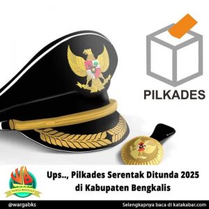 Perhelatan pesta demokrasi serentak tingkat desa tahun 2023 ini ditunda hingga tahun 2025 mendatang di Kabupaten Bengkalis. Keputusan penundaan Pemilihan Kepala Desa (Pilkades) serentak tersebut berdasarkan hasil keputusan rapat Pemerintah Kabupaten Bengkalis bersama Forum Koordinasi Pimpinan Daerah (Forkopimda).