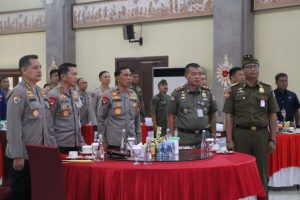 Hadir Kapolda Bali Irjen. Pol. Drs. Putu Jayan Danu Putra, S.H., M.Si., didampingi Wakapolda Bali Brigjen. Pol. Drs. I Ketut Suardana, M.Si., dan Seluruh PJU Polda Bali saat menerima Rombongan Polda DIY dalam Studi Banding di Polda Bali, bertempat di Gedung PRG, Kamis (23/2/2023).