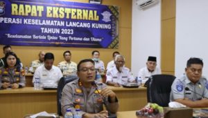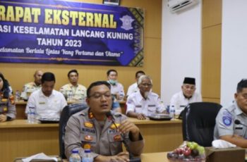 Jelang pelaksanaan Operasi Keselamatan Lancang Kuning 2023, Polres Dumai gelar rapat eksternal yang mengangkat tema ‘Keselamatan Berlalu Lintas yang Pertama dan Utama’ bertempat di Ruang Command Center Lt. II Polres Dumai, Rabu (01/02/23).