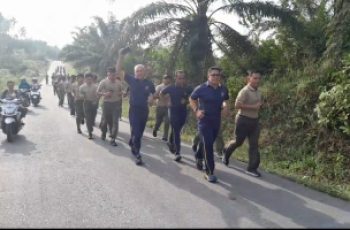 Kemudian dilanjutkan dengan jogging Bersama dari Mako Polsek Siak Hulu menuju Kompi Kavaleri 6/RBT Desa Baru.