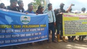 Dimana para aksi kelompok tani mengatakan bawa lahan yang 500 H bukan lah lahan PT Nubika Jaya tapi melainkan lahan yang di kuasai masyarakat sejak tahun 1996 sampai saat ini.