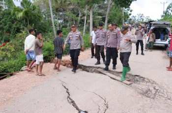 NTT, jurnalpolisi.id – Bencana alam tanah longsor yang terjadi di Kolonakaf , Desa Napi Kecamatan KiE, Kabupaten Timor Tengah Selatan (TTS) (10/01/22 ) lalu mengakibatkan terputusnya akses jalan serta rusaknya sejumlah rumah warga, Rabu (31/01/2023) kemarin Kapolres Timor Tengah Selatan AKBP I Gusti Putu Suka Arsa, S,Ik di dampingi PJU Polres Timor Tengah Selatan meninjau lokasi bencana.