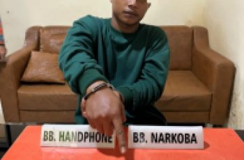 Selanjutnya dilakukan penggeledahan yang disaksikan oleh Perangkat Desa setempat ditemukan 1 (satu) paket Narkotika jenis Shabu yang dibungkus dengan plastik bening yang dibalut kertas Tissue dan lakban warna hitam sambil dipegang menggunakan tangan kiri.