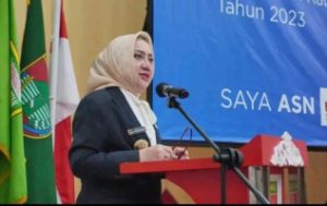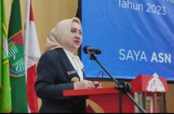 Bupati Musi Rawas Hj. Ratna Machmud Melantik dan Pengambilan Sumpah Pengangkatan CPNS menjadi PNS dan Pejabat Fungsional serta Penyerahan Petikan Keputusan Bupati Musi Rawas Tentang Pengangkatan CPNS di Lingkungan Pemerintah Kabupaten Musi Rawas Tahun 2023 di Auditorium Kabupaten Musi Rawas, Selasa (7/3/2023).
