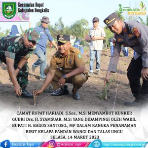 Sementara itu, dalam agenda kunkernya, Syamsuar melaksanakan penanaman perdana bibit kelapa pandan wangi dan talas ungu bertempat di SMK Negeri 1 Rupat, Selasa 14 Maret 2023.