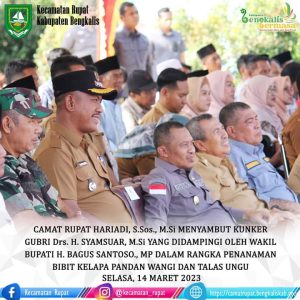 Camat Rupat Hariadi, S.Sos., M.Si Menyambut Kunker Gubri Drs. H. Syamsuar, M.Si yang Didampingi Oleh Wakil Bupati H. Bagus Santoso., MP dalam Rangka Penanaman Bibit Kelapa Pandan Wangi dan Talas Ungu, Dilanjutkan dengan Pelepasan Samsat Tanjak & Pembukaan Pelayanan Perpanjangan Pajak 5 Tahun Khusus di Pulau Rupat.