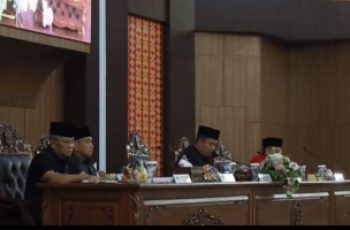 Wali Kota Lubuklinggau H SN Prana Putra Sohe, bersama Wakil Wali Kota Lubuklinggau H Sulaiman Kohar hadiri rapat paripurna DPRD Lubuklinggau dengan agenda mendengarkan laporan pansus dewan hasil pembahasan empat raperda usul pemerintah kpta Lubuklinggau dan enam rapersa inisiatif DPRD.