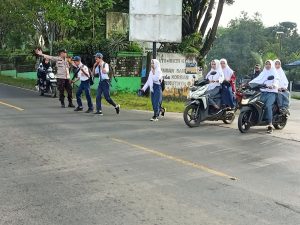 Hadir Ditengah Masyarakat, Polisi Polsek Polut Bantu Pelajar Menyeberang Jalan