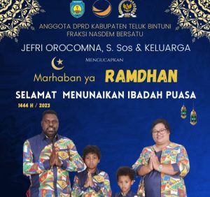 Anggota DPRD Kabupaten Bintuni Fraksi Nasdem Bersatu Jefri Orocomna S.Sos Beserta Keluarga Mengucapkan ” MARHABAN YA RAMADHAN ” SELAMAT MENUNAIKAN IBADAH PUASA 1444/2023