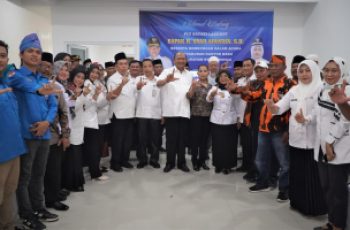 Syah Afandin menggunting pita dalam acara peresmian dan tasyakuran masuk kantor baru, juga memberikan santunan kepada anak yatim sebanyak 50 orang.