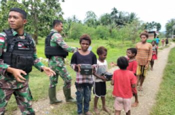 Kedatangan Personil satgas Yonif 132/BS kususnya Pos bendungan tami disambut dengan antusias oleh masyarakat Kampung Telaga