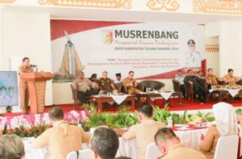 Pemerintah Daerah Kabupaten Tulang Bawang melaksanakan agenda Musyawarah Rencana Pembangunan (Musrenbang) dalam rangka penyusunan Rencana Kerja Pemerintah Daerah (RKPD) kabupaten Tulang Bawang 2024 yang bertempat di Gedung Serba Guna (GSG) kabupaten setempat, Selasa (07/03/2023).
