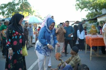 Dimana, di pasar Ramadhan yang berada di Jalan Mawar tersebut, Ketua PKK bersama Bupati membeli dagangan setiap pedagang yang kemudian dibagikan kepada masyarakat. Ratusan masyarakat yang melintas begitu antusias singgah dan menerima bingkisan takjil yang diberikan.