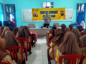 Kapolres Tebo AKBP Fitria Mega.M.Psi.Psi yang diwakili oleh Kasat Binmas Polres Tebo AKP Sutikno menggelar Jumat Curhat, bertempat di SMAN 7 Tebo Kecamatan Rimbo Ilir Kabupaten Tebo, pada Jumat (10/03/2023).