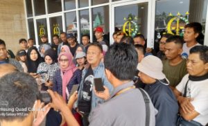 Ratusan pedagang Pasar Induk Kroya bersatu bersama Anggota Lembaga Swadaya Masyarakat Gerakan Masyarakat Bawah Indonesia (LSM GMBI) Kab. Cilacap, mendatangi kantor Kejari Cilacap untuk melaporkan PT. Tata Daerah Mandiri (TDM). Jum’at, (17/03/2023).