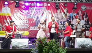 Sekda Djarot Supriyoto bernyanyi bersama pengurus Forkos, Bagus Suryokusomo diiringi artis Nurma KDI dan grup Mr. Boy di opening Expo 2023 di Alun-Alun Bung Karno Ungaran,Kamis,(2/3/2023)