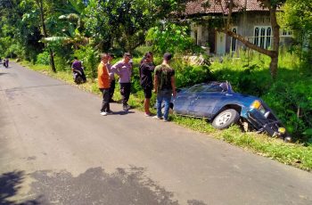 Sopir Mengantuk, Mobil Masuk Selokan di Kutasari
