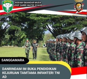 Danrindam IM Buka Pendidikan Kejuruan Tamtama Infanteri TNI AD