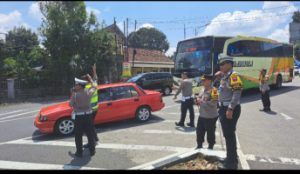 “Sedemikian halnya bagi kendaraan yang keluar dari jalan lingkar Ambarawa hendak ke Semarang, kami arahkan melewati jalur samping pasar hewan keluar turunan gudang Dolog Bawen.” Terang Kasat Lantas.