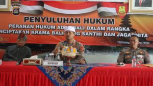 Saat ini kita kedatangan Ketua MDA Kabupaten Tabanan bapak Drs. I Wayan Tontra, M.M, untuk menyampaikan materi penyuluhan hukum adat, hendaknya apa yang disampaikan narasumber agar peserta mencermati dengan baik untuk dijadikan pedoman dalam pelaksanaan tugas di lapangan dan bisa menyelesaikan dengan karakteristik masyarakat, dengan menghormati kearifan lokal “. Ujar Kapolres Tabanan.