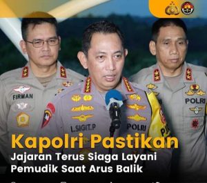 Kapolri menyampaikan personel Polri akan terus bersiaga mengingat adanya pergeseran prediksi puncak arus balik hingga Minggu, 30 April 2023 mendatang.